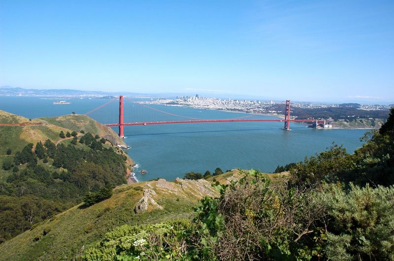 Unglaublich, die Aussicht von hier oben. Ein eher kühler Wind pfeift einem um die Ohren, aber der Blick ist einmalig auf der Welt. In der Bay sieht man Alcatraz liegen. In meinem Rücken befindet sich ein verfallenes Fort aus dem zweiten Weltkrieg.